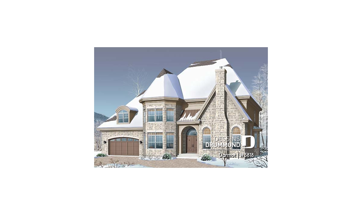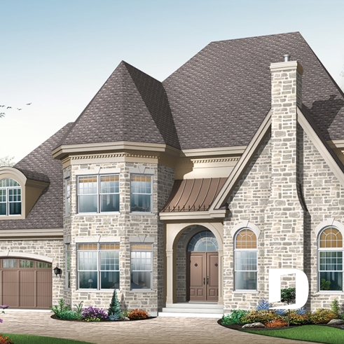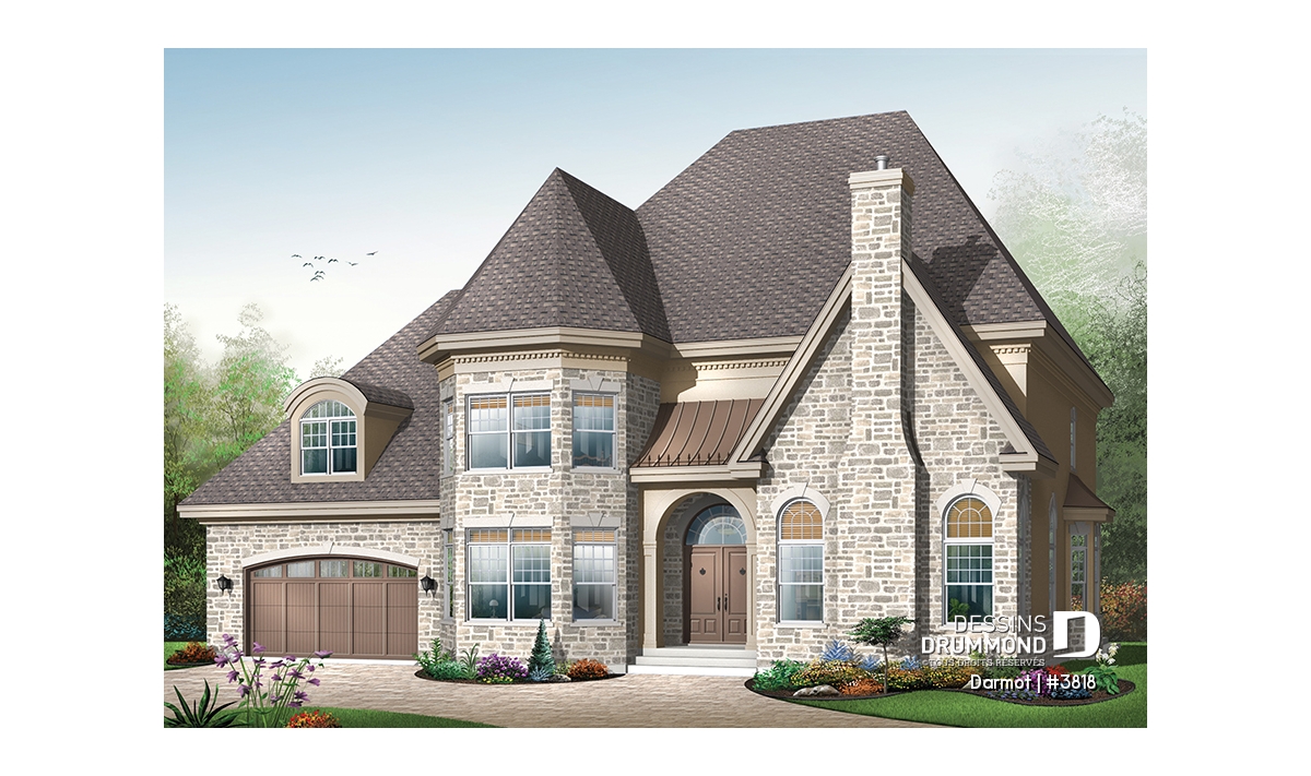 Encadrée d’une part d’un bien beau volume agrémenté d’une cheminée élancée et d’autre part d’une tour sur deux étages, l’entrée principale se veut bien rassurante. Sans oublier le garage double, conférant encore plus de chic à l’ensemble, on peut définitivement qualifier ce cottage de remarquable.