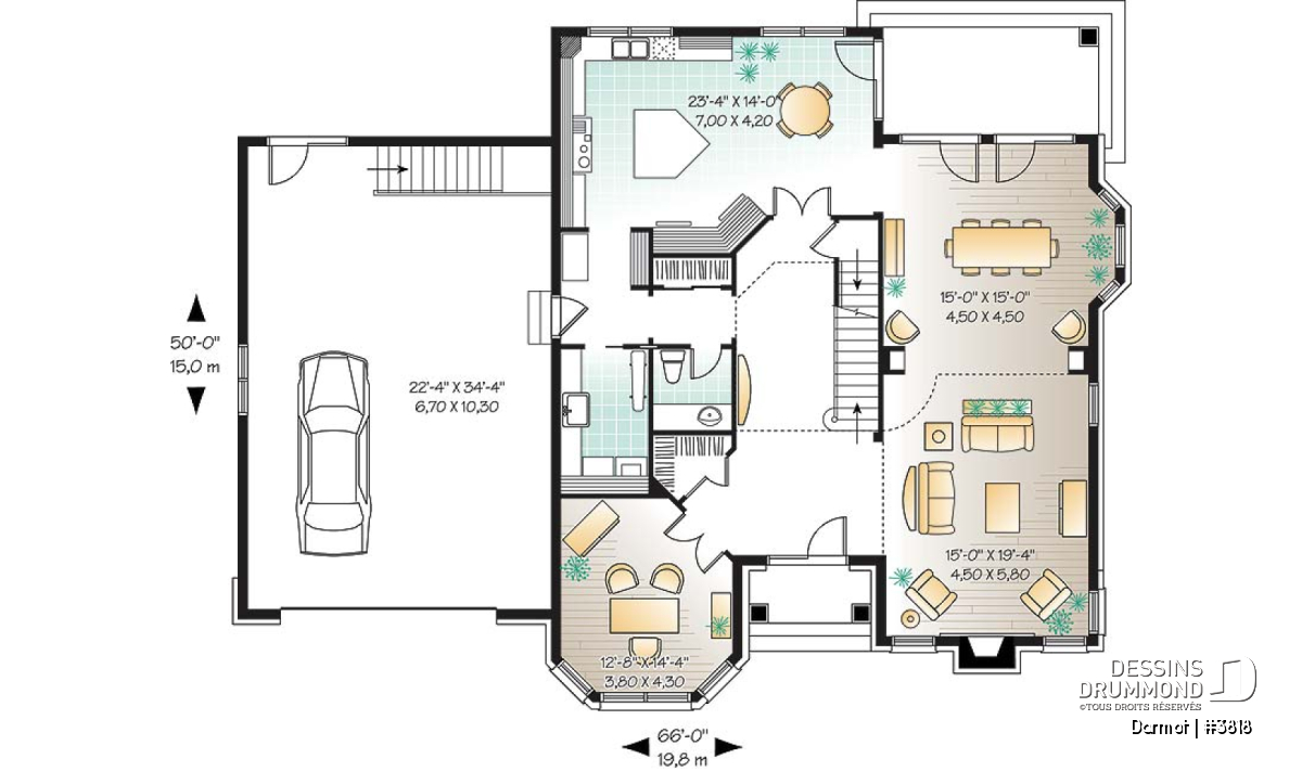 Mezzanine, Foyer, Accès au sous-sol du garage, Bureau / Salle étude, Salle de lavage au rez-de-chaussée, Terrasse abritée, Accès au sous-sol du garage, Dinette / Coin déjeuner, Suite des maîtres à l'étage, Walk-in ch. maîtres, Espace boni aménageable, Plafond à plus de 8', Plafond cathédrale, Salle à manger formel, Lavabo double, Bain et douche séparés