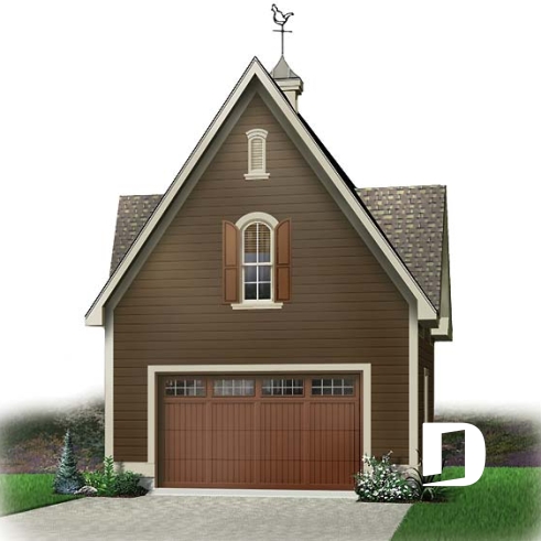 Vue avant - MODÈLE DE BASE - Plan de garage simple deux étages de style Victorien et champêtre - Daunois