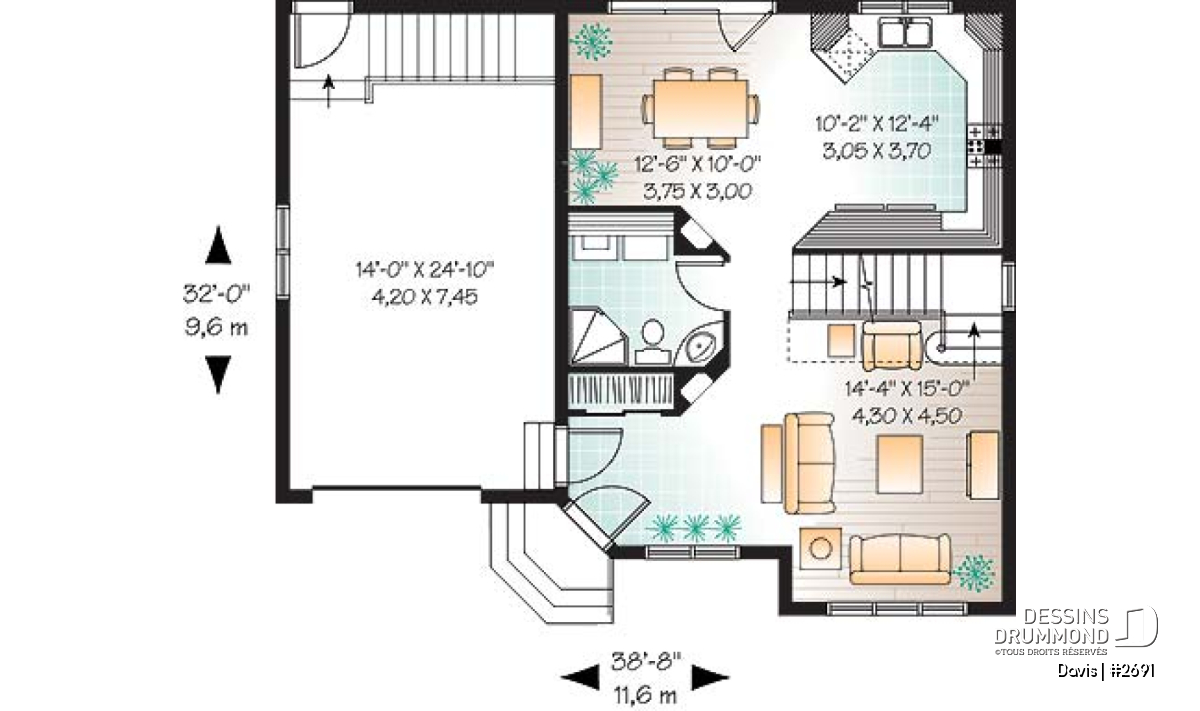 | Largeur | 38'8" | Profondeur | 32'0" |