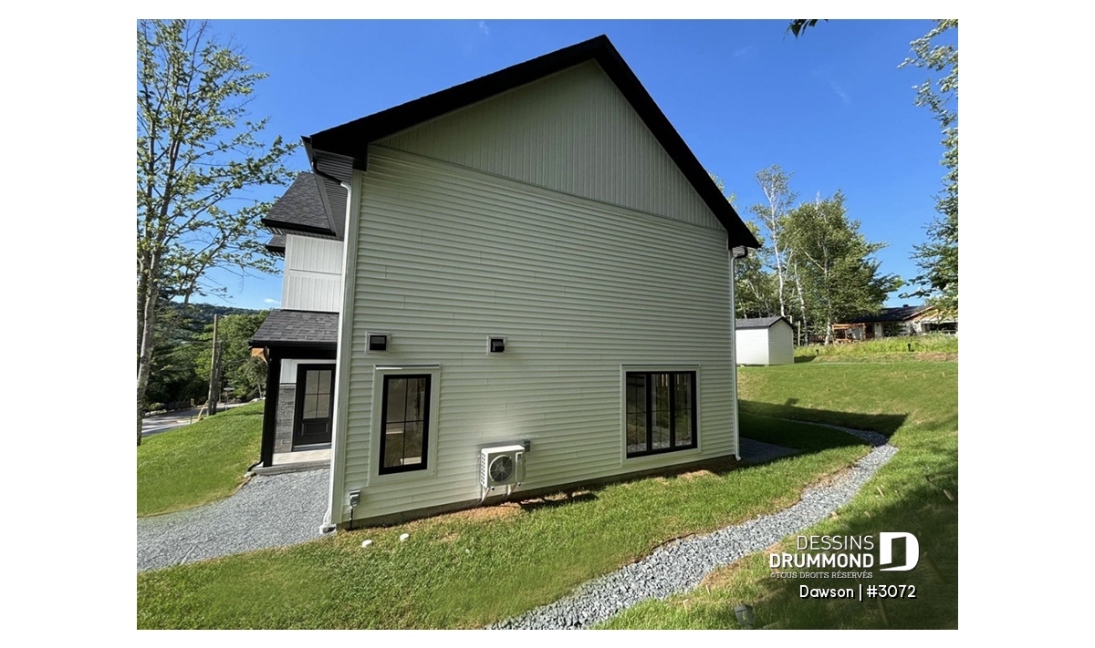 Au logement de gauche, la salle de lavage est aménagée à l'étage alors que pour le logement de droite, elle est pensée pour être au sous-sol.