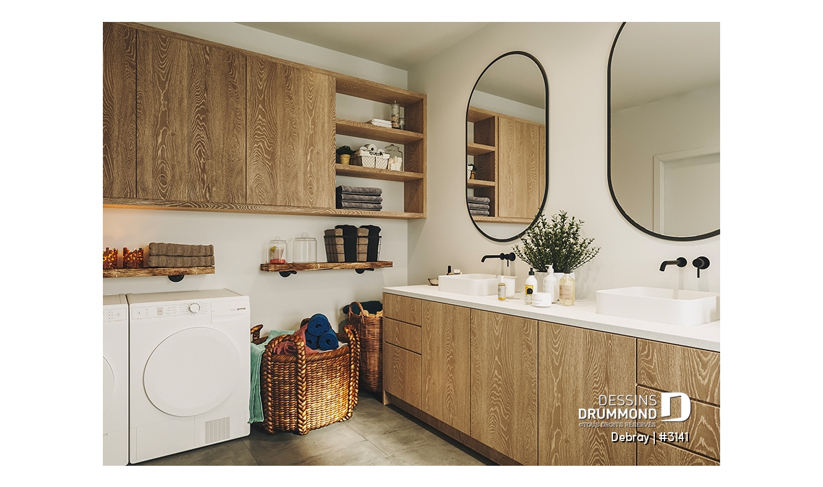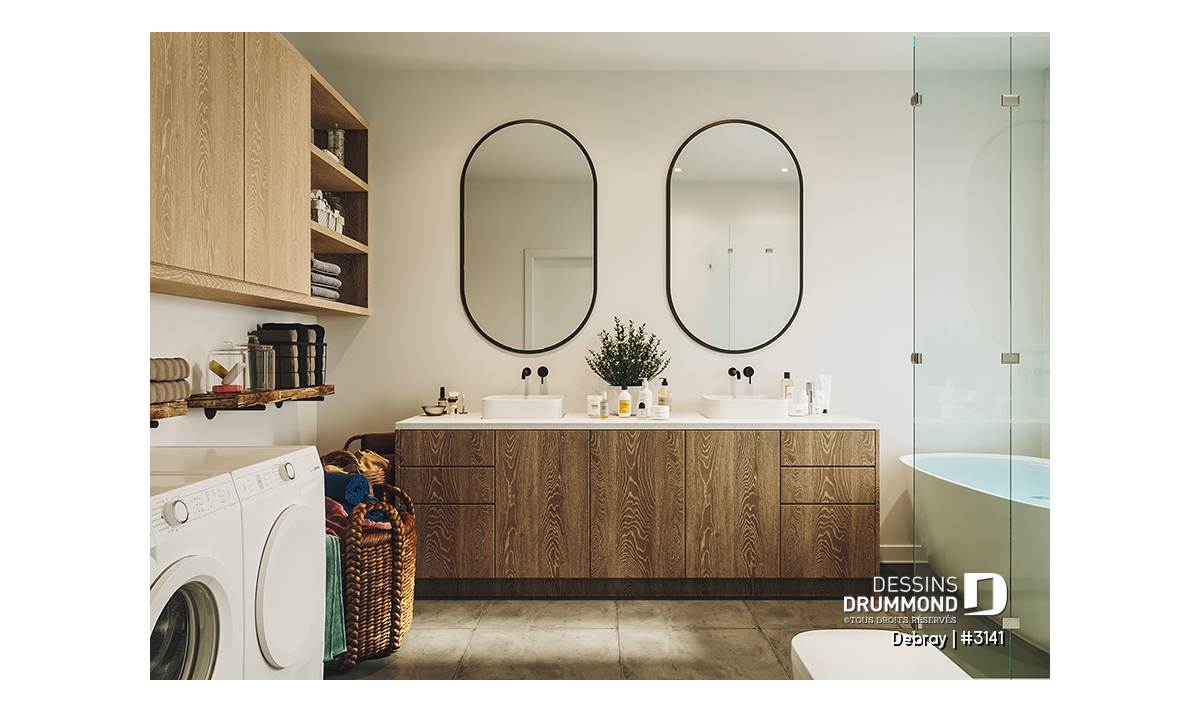 Sale de bain inclut un coin salle de lavage.