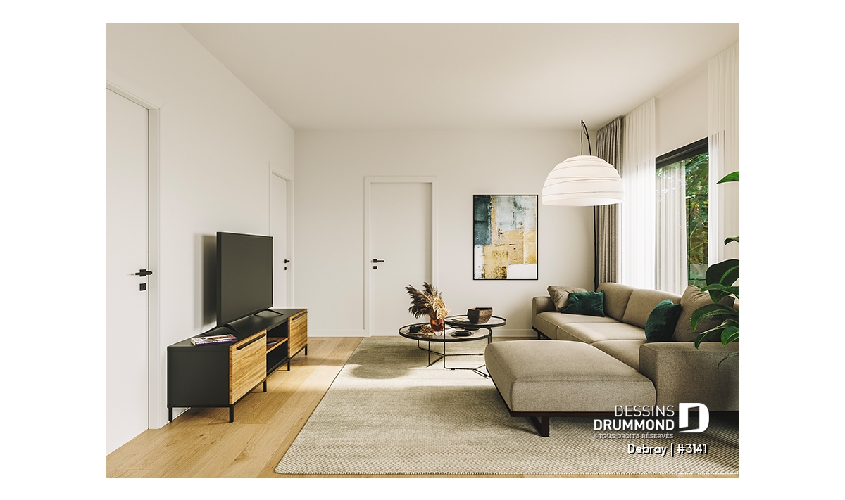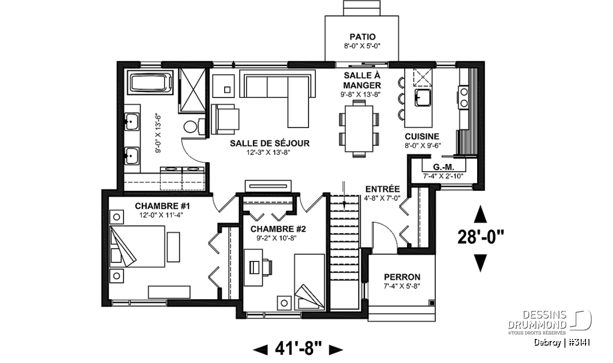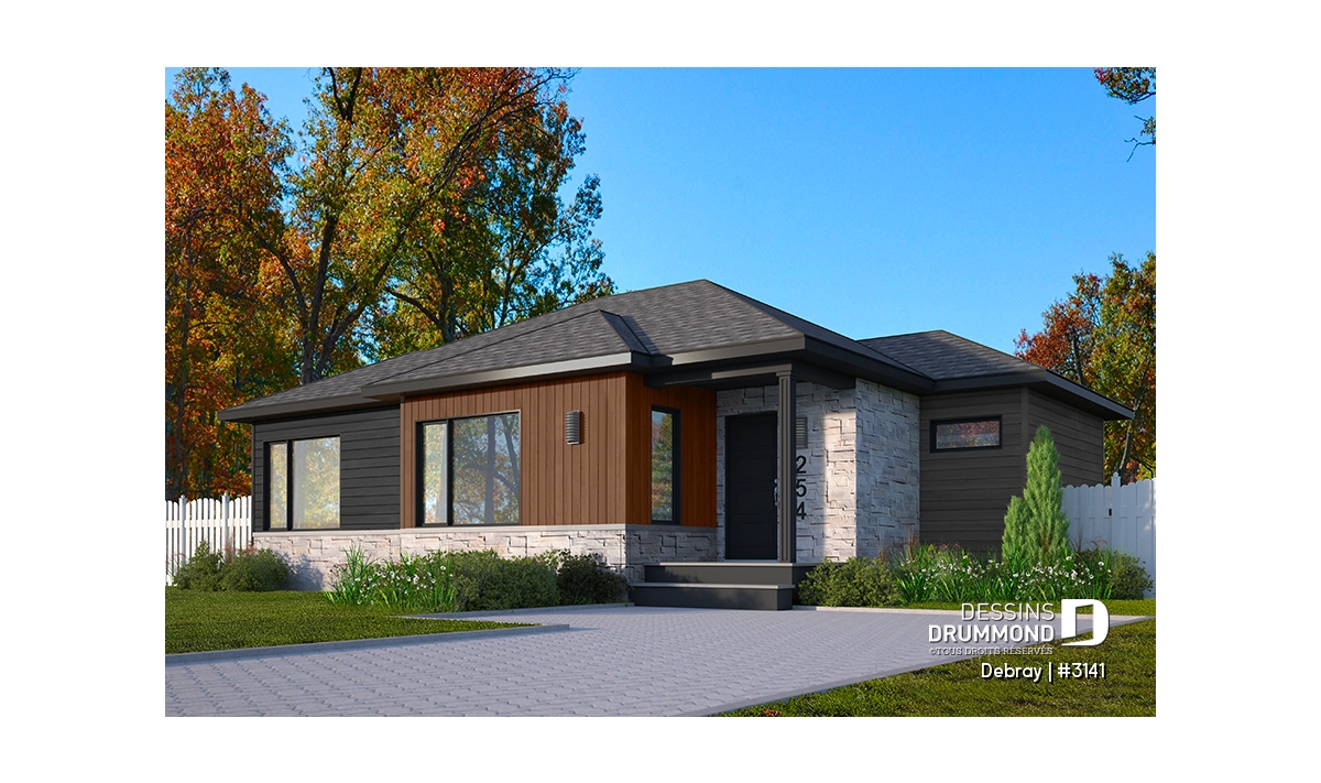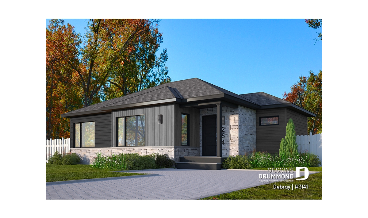 Le plan de la maison DEBRAY (#3141) offre 998 pieds carrés bien pensés. Compacte et moderne, cette maison est conçue pour maximiser l'espace de vie.
