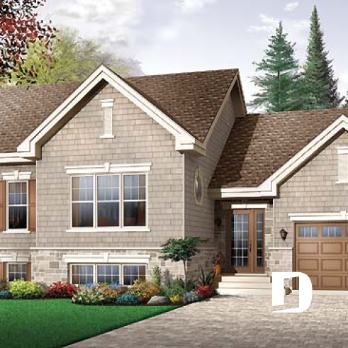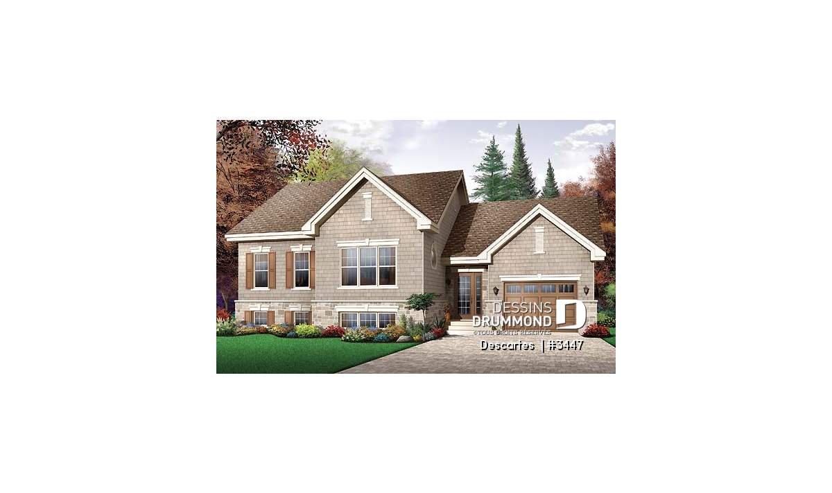 À l’instar du modèle de la semaine passée ( plan 3857 ), celui-ci fut réalisé à partir du modèle 2447, une maison fort populaire que vous êtes en mesure de voir en tout temps sur notre site internet dessinsdrummond.com. L’extérieur a été retouché de façon significative avec l’ajout d’une bande de brique-pierre mariée à de l’imitation bardeau de cèdre pour une façade à la fois distincte et des plus chaleureuses.