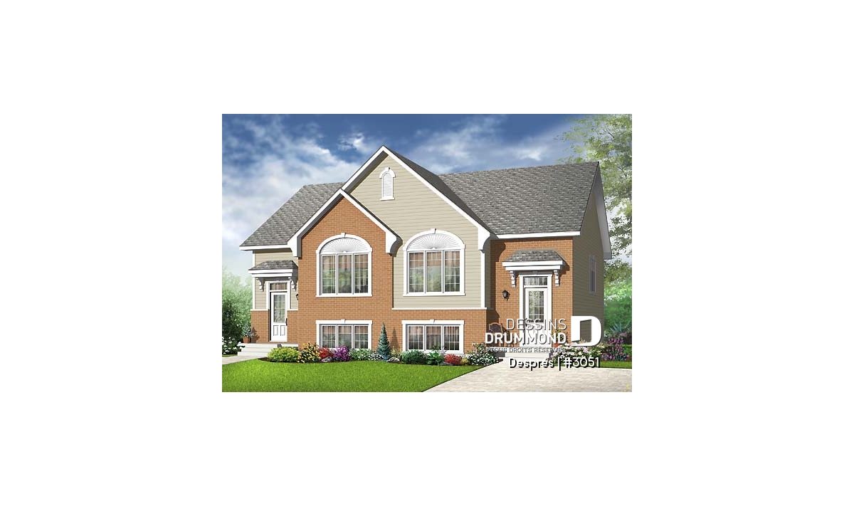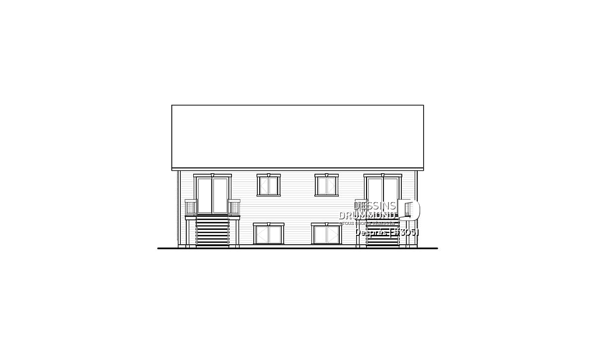 D’abord, à l’extérieur, on remarque une certaine asymétrie dans l’application des matériaux en façade principale et, à l’arrière, des terrasses aménagées aux extrémités et de façon suffisamment éloignées rejoignant ainsi les principales requêtes des propriétaires de ce type d’habitation.