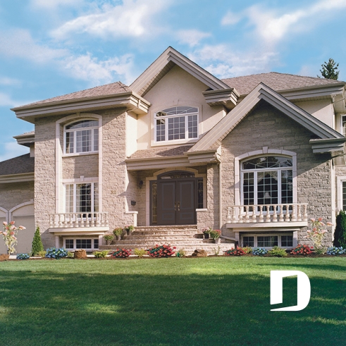 De format imposant cette maison demeure élégante avec ses matériaux de recouvrement bien mariés et ses volumes aux fenestrations et toitures bien balancées.
