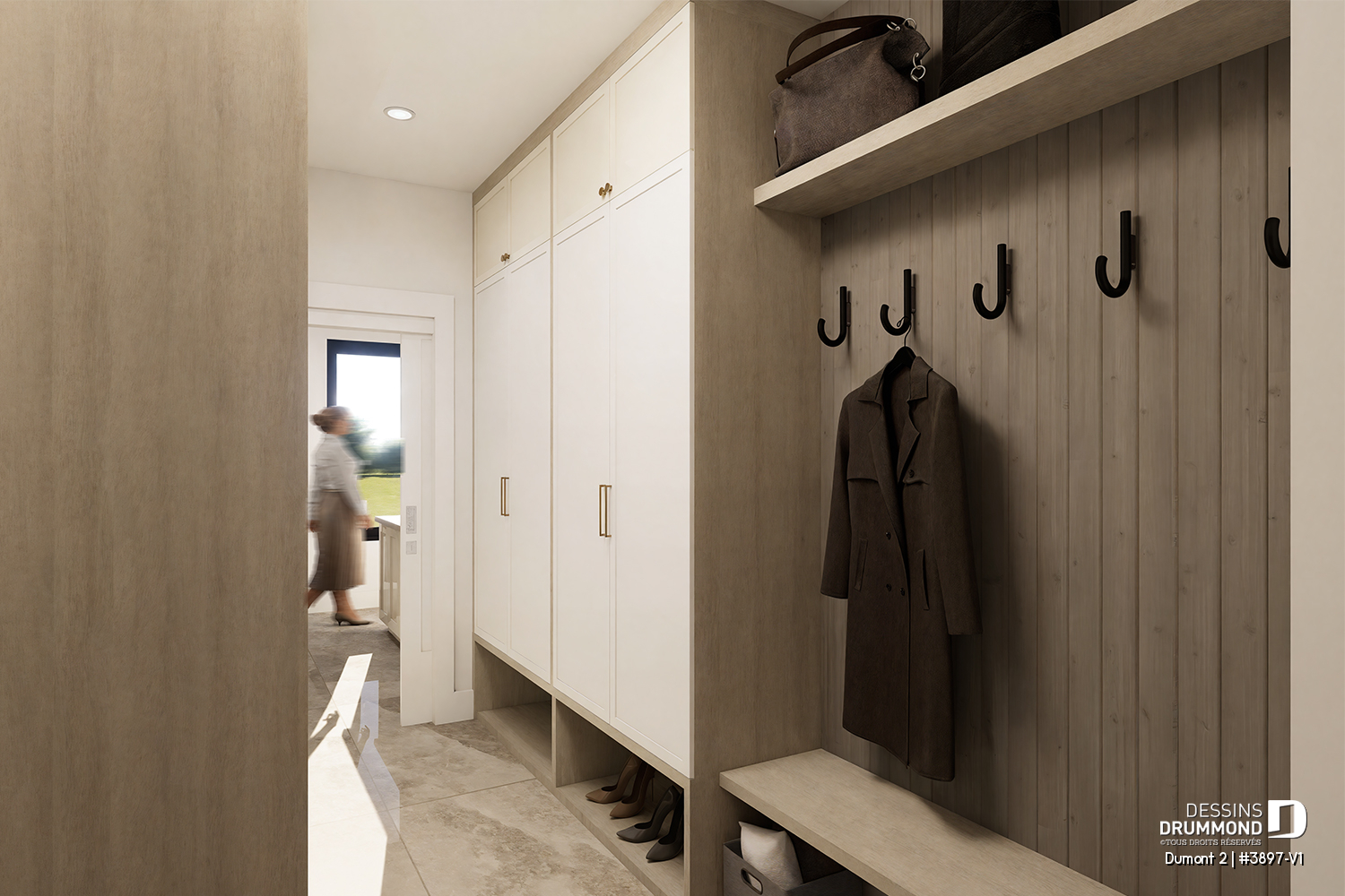 Accès direct du garage au vestiaire et au garde-manger, pratique pour faciliter les arrivées avec les emplettes.