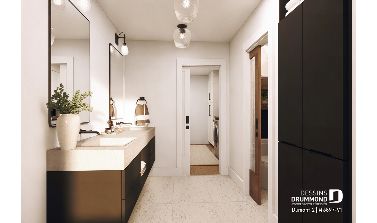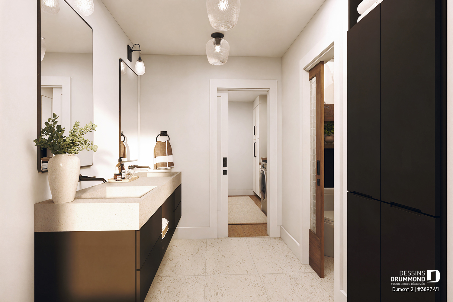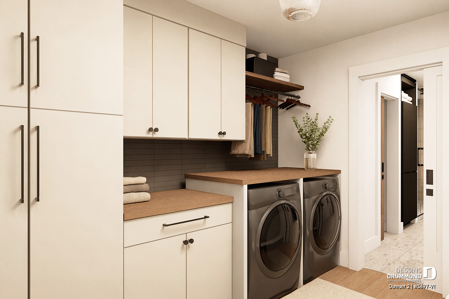 Salle de lavage pratique à l’étage, accessible du corridor et de la salle de bain des parents.