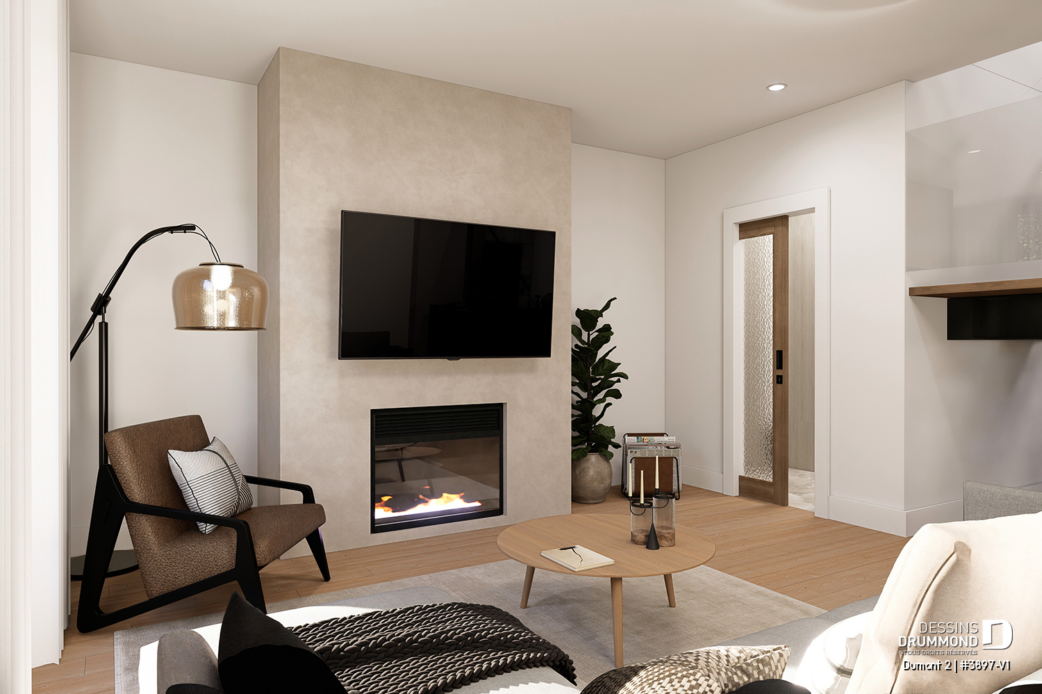 Espace flexible au rez-de-chaussée : bureau ou salle de jeux selon vos besoins.