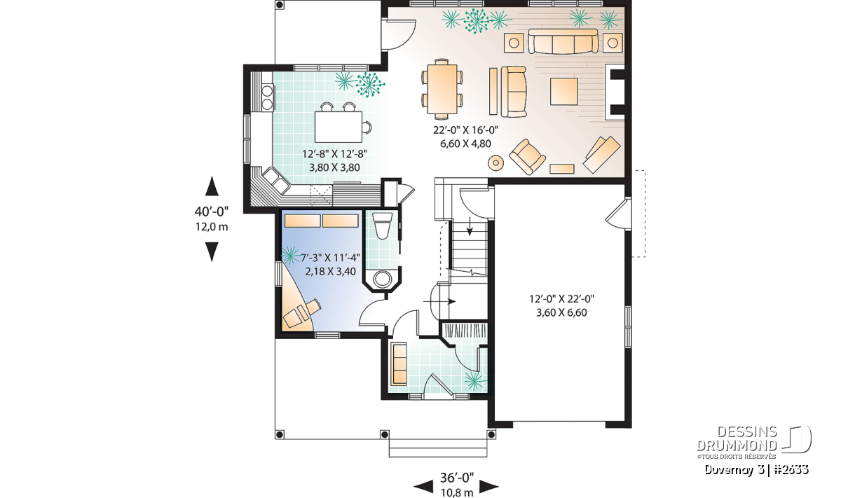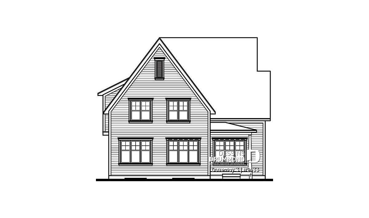 D’abord, un garage bien intégré et une entrée avant couverte. Ensuite, un vestibule, un espace bureau à domicile et plus particulièrement tout ce secteur activité situé à l’arrière, amplement fenestré et regroupant une cuisine attrayante avec ilôt central et une salle à manger groupée à une salle familiale agrémentée d’un foyer.