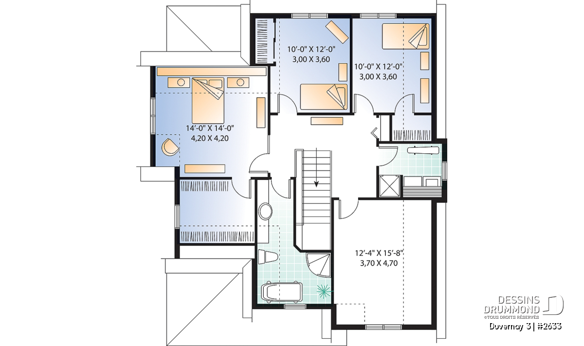 À noter ici, la version 2635 offrant une organisation différente dont une buanderie groupée à une salle de douche au rez-de-chaussée, à la place de l’espace bureau, et un aménagement différent des chambres à l’étage avec petit espace séjour intéressant et le même espace boni. À vous de choisir !