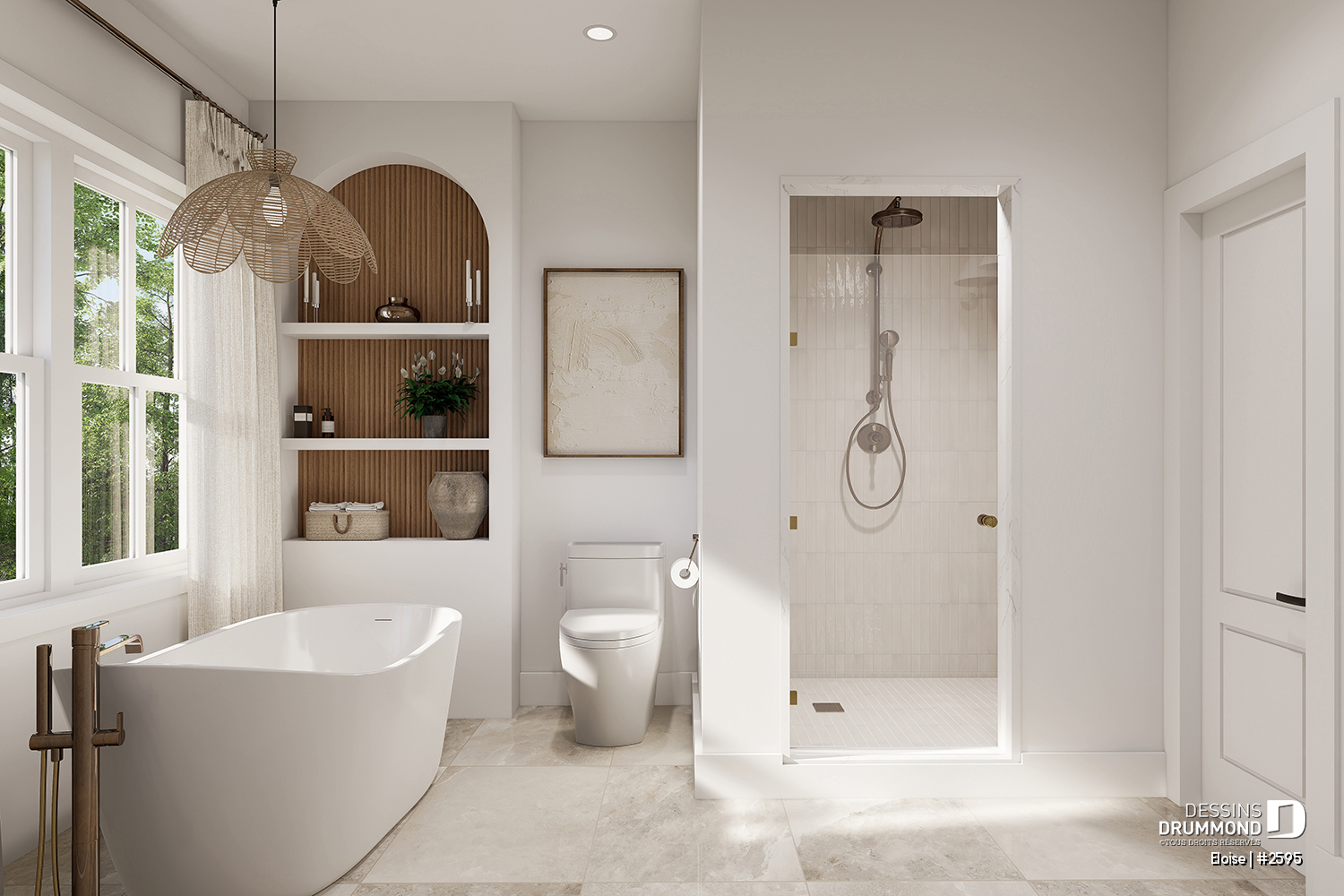 Salle de bain complète avec bain et douche séparés, ainsi qu’une lingerie pratique.