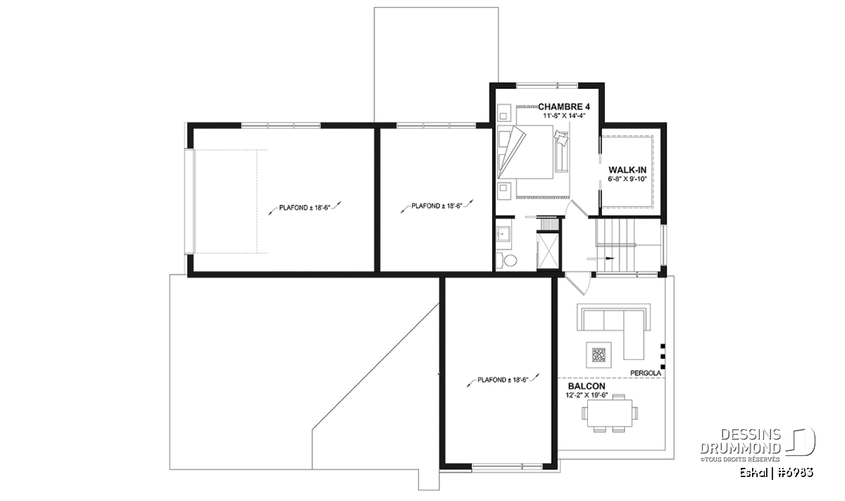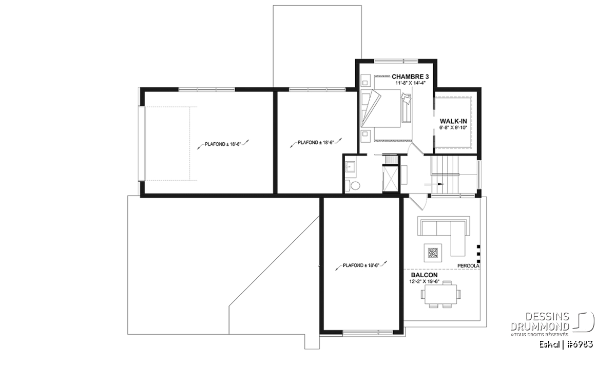 **L'estimation du coût de construction est pour le plancher de base uniquement. Pour ce plan #6983, elle inclut le balcon arrière couvert ainsi que le balcon à l'étage. Ces deux éléments sont d'ailleurs prévus sur les 3 versions de ce plan, bien que l'estimation soit uniquement pour le plan de base.