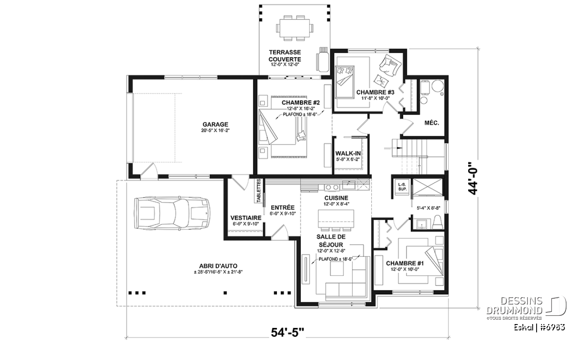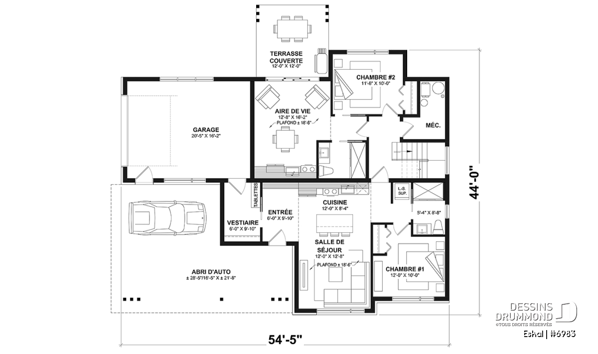 Une abri d'auto pouvant accueillir 2+ voitures est présente sur dans toutes les options.