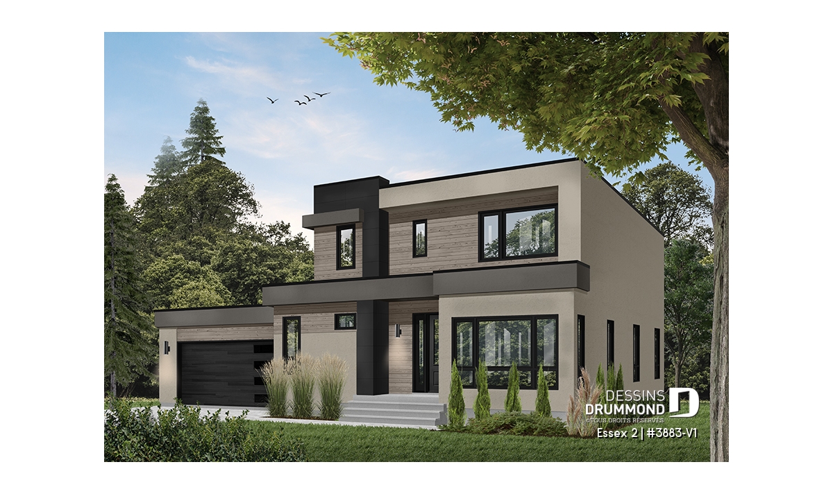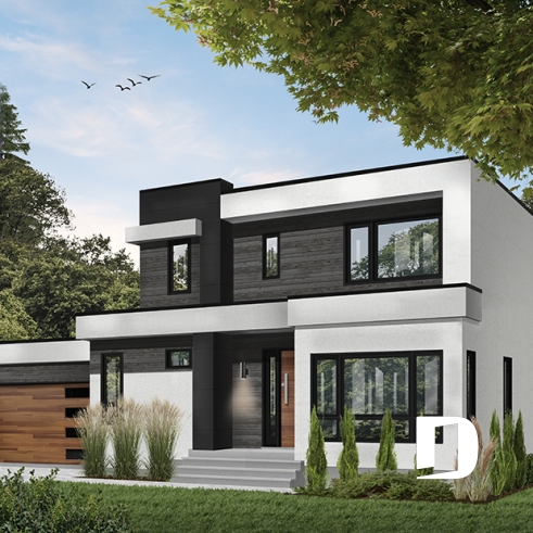 Modèle de maison de style cubique, avec garage double.