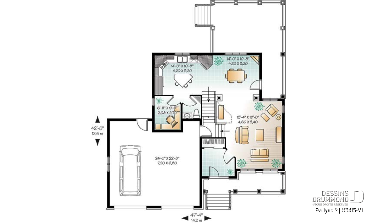 Largeur 47'4" Profondeur 42'0"