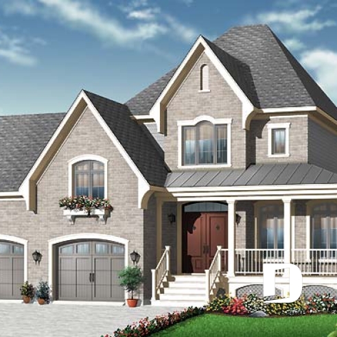 Vue avant - MODÈLE DE BASE - Maison style américain, 3 chambres remarquables, style champêtre, garage double, bureau, buanderie à l'étage - Evelyne 2