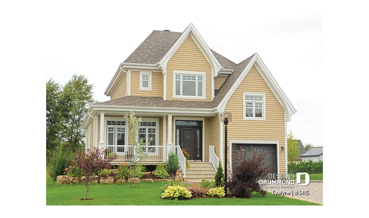 Donc, en plus de ce garage abaissé simplifiant la vie aux constructeurs, ce cottage propose deux galeries couvertes dont une à l’avant et l’autre à l’arrière et attenante à la salle à manger.