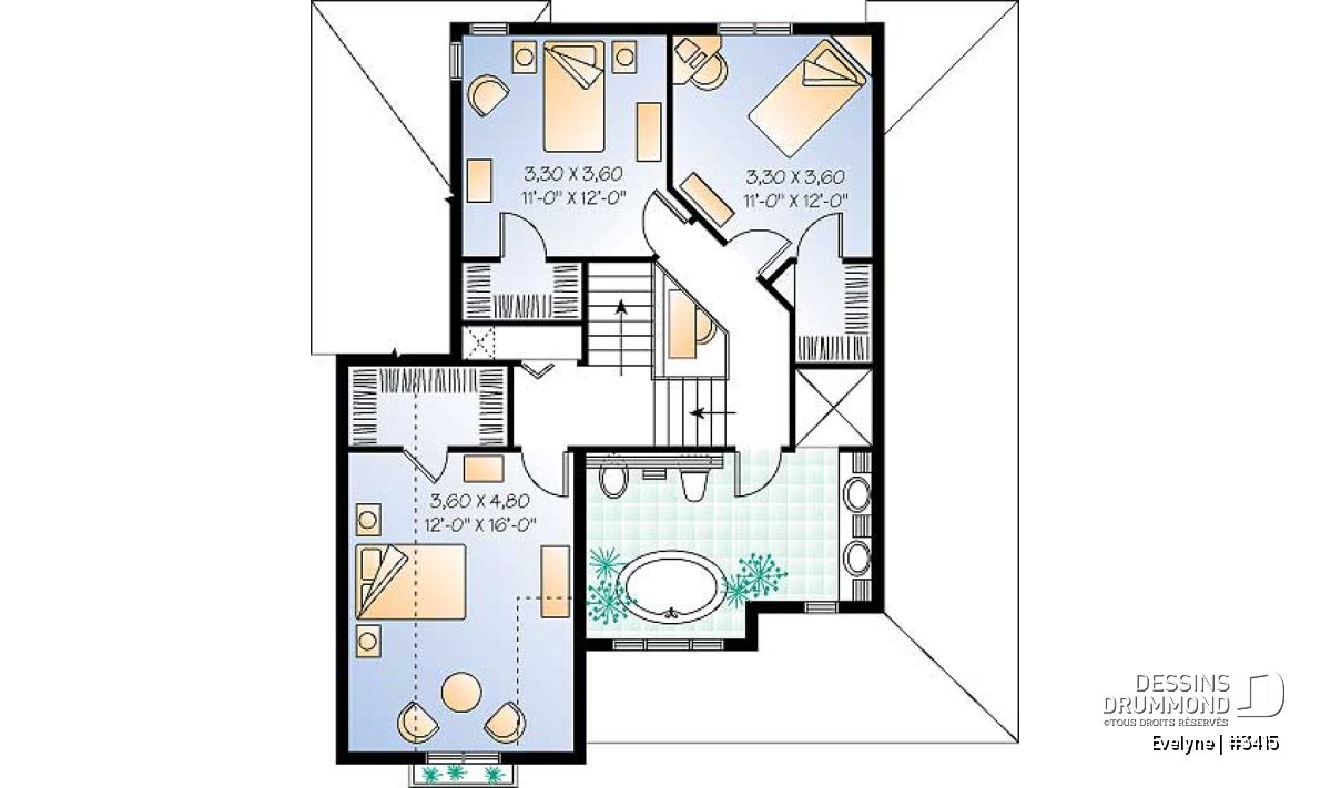 À l’étage, sur deux paliers différents, on retrouve au premier palier une chambre des maîtres de très beau format avec plafonds accentués en pente rejoignant un plafond plat et à 9 pieds de hauteur pour un cachet tout à fait particulier, et, au second palier, une vaste salle de bain avec grande douche bien dissimulée, baignoire confortable, vanité double, toilette et bidet. Sans oublier deux belles chambres secondaires qui ne sont pas en reste avec chacune sa garde-robe de type « walk-in ».