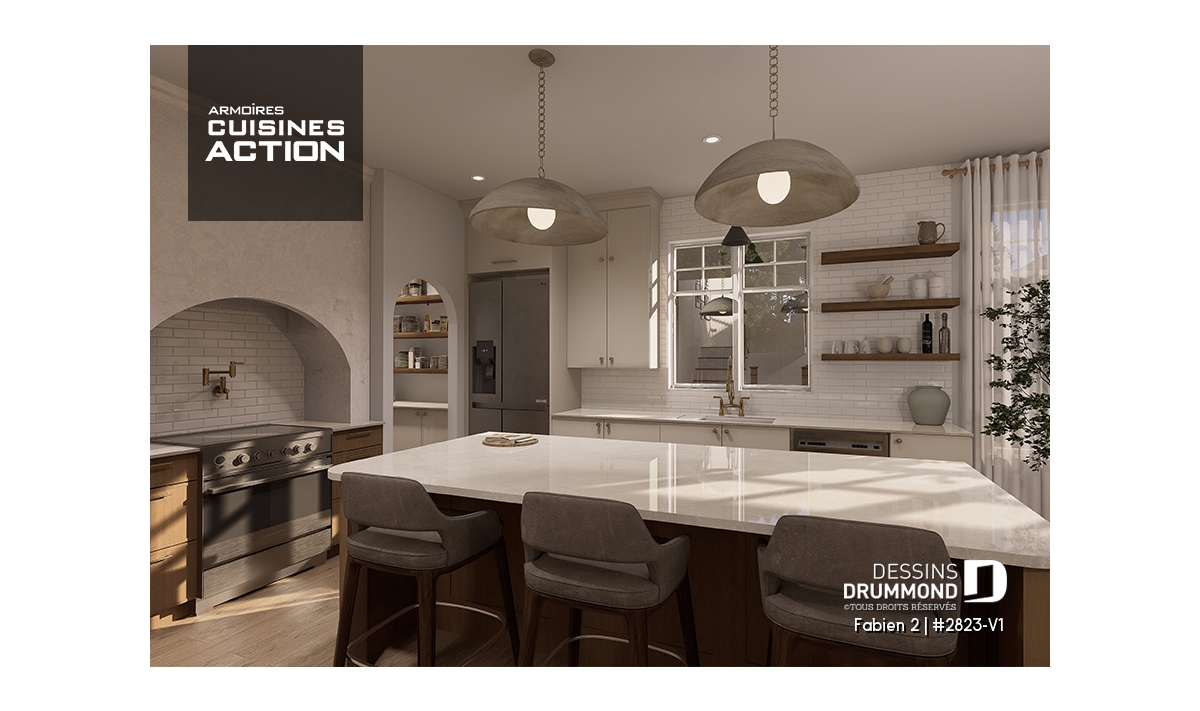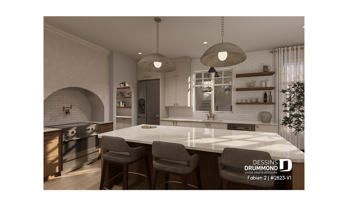 Arche, Coin bureau, Galerie 2-3 côtés, Garde-manger, Ilôt, Salle de lavage à l'étage, Suite des maîtres à l'étage, Vestiaire, Vue paronamique, Plafond à plus de 8', Walk-in ch. maîtres, Aire ouverte, Bain et douche séparés, Lavabo double