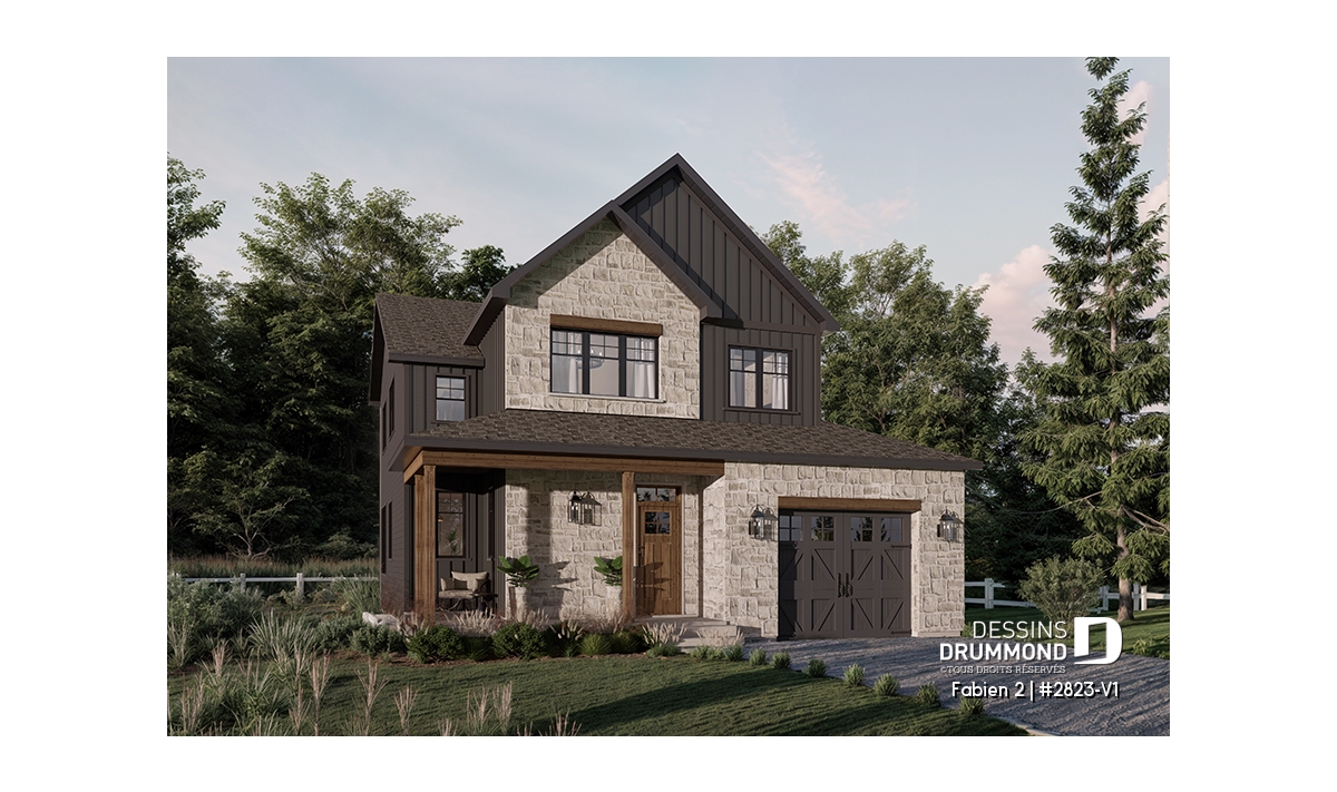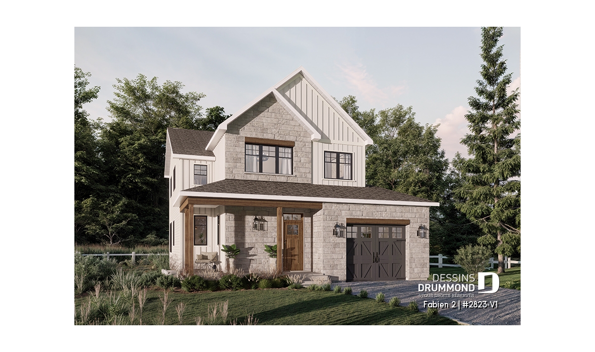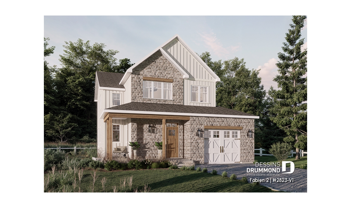 Le plan de maison champêtre à étage avec garage FABIEN 2 séduit par son charme intemporel et sa conception pensée pour la vie de famille. Avec ses lignes classiques et son ambiance chaleureuse, cette demeure combine à merveille fonctionnalité moderne et esthétique champêtre.
