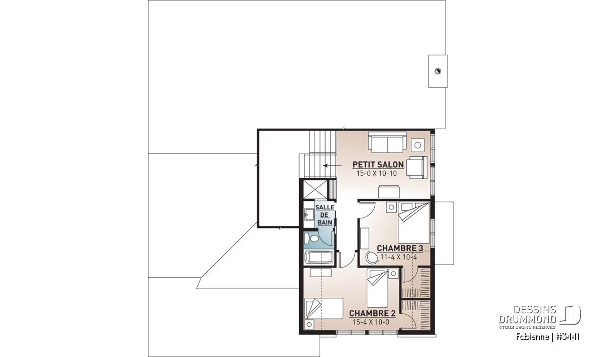 L'espace boni aménageable est généralement prévu au-dessus du garage et il est accessible de la maison. Comme il est prévu aménageable, il pourra devenir un bureau, un espace buanderie, une salle de bain, un coin bibliothèque ou même une chambre additionnelle pour laquelle les propriétaires devront s'assurer d'avoir une fenêtre conforme aux normes en vigueur. De plus, la finition de cette espace boni est toujours INCLUSE dans nos estimation du coût de construction, sauf si avis contraire dans les sections « Description et/ou Éléments descriptifs » de la page du plan.