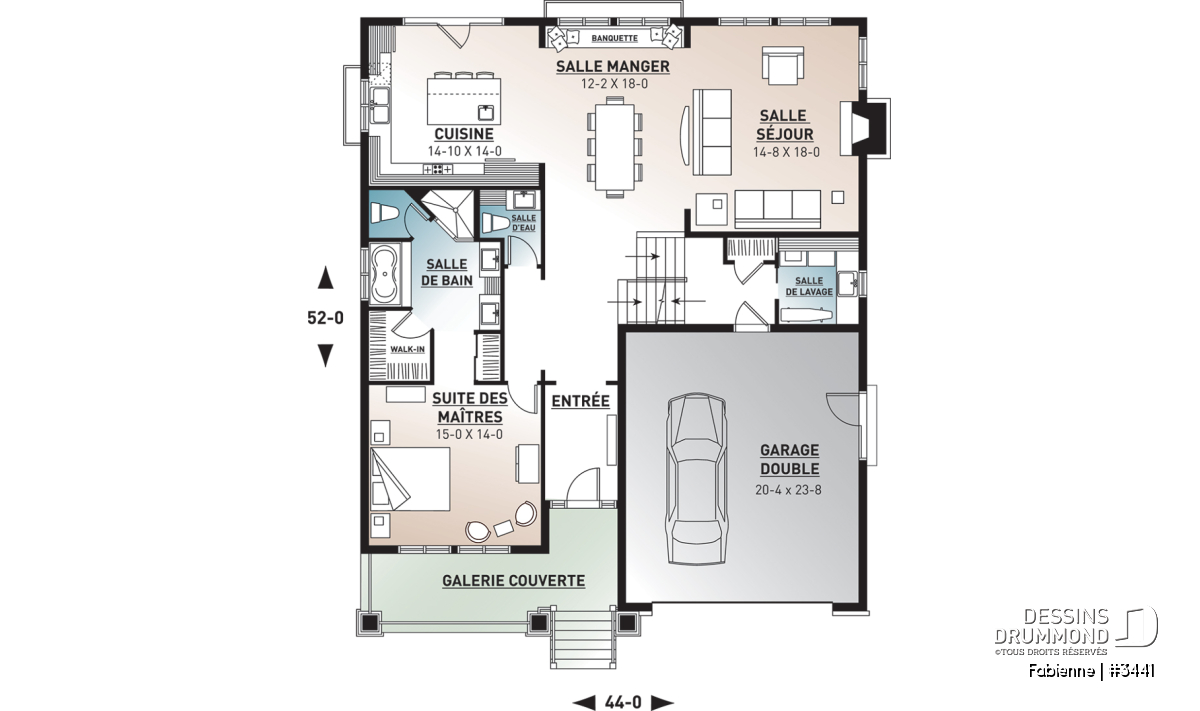 | Largeur | 44'0" | Profondeur | 52'0" |