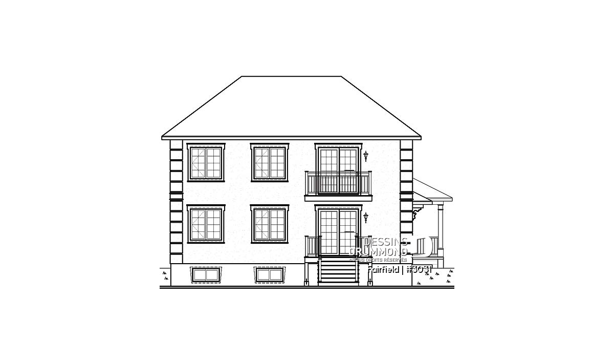 Vue avant - MODÈLE DE BASE - Plan de duplex 5 et demi (5 1/2) de style Européen offrant 3 chambres et buanderie par unité. - Fairfield