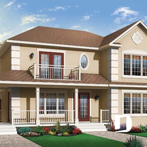 Galerie et balcon à l'avant comme à l'arrière. Aménagement intérieur avec cloisons à angle et trois chambres à chaque logement.