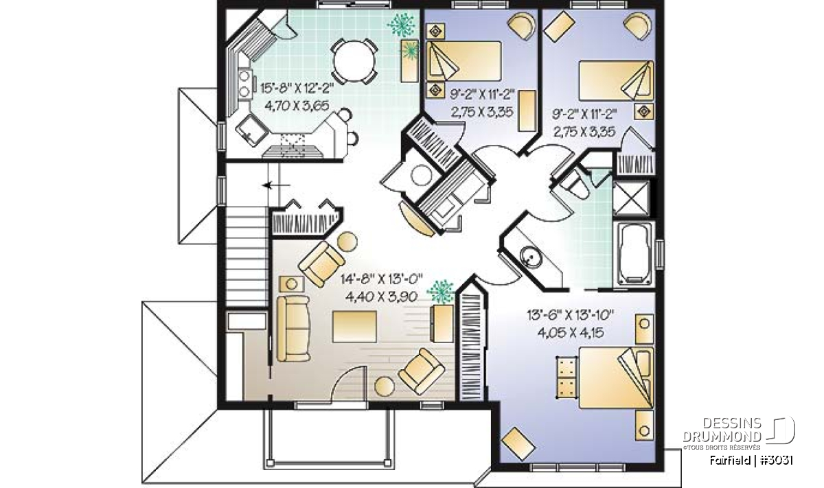 Étage - Plan de duplex 5 et demi (5 1/2) de style Européen offrant 3 chambres et buanderie par unité. - Fairfield