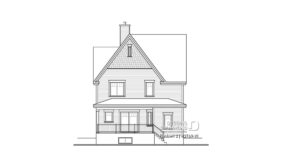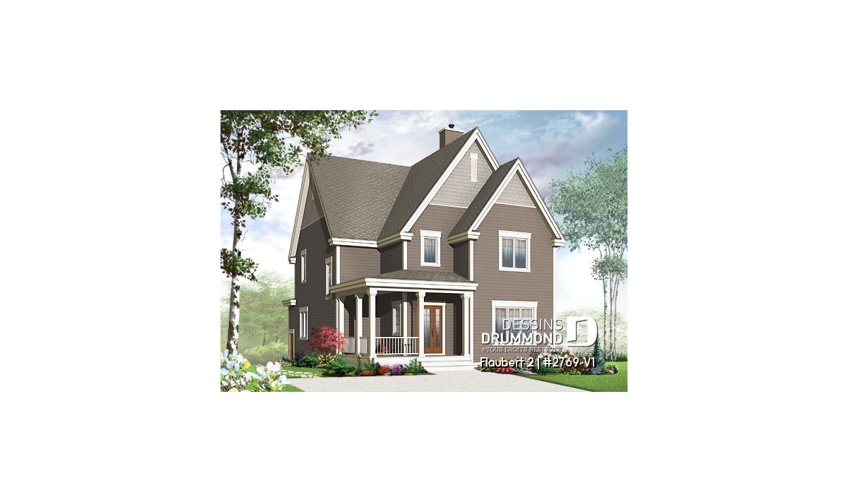 Vue avant - MODÈLE DE BASE - Plan de maison d'inspiration Tudor, 3 chambres, bureau, 2.5 salle de bain, suite des maîtres à l'étage - Flaubert 2