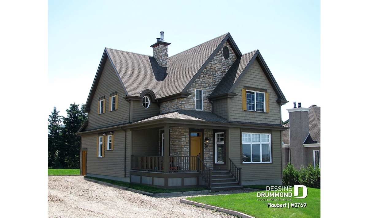 À noter ici que l’on retrouve une galerie couverte tant à l’avant de la maison qu’à l’arrière de celle-ci pour encore plus de commodités.