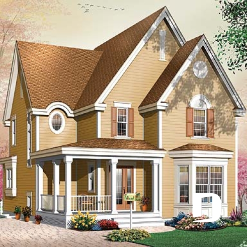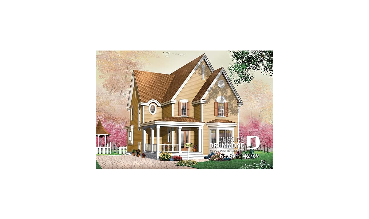 Plan de maison d'inspiration Tudor, 3 chambres, cuisine avec garde-manger, salle de lavage à l'étage