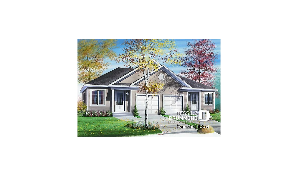 Jumelé d'approche budgétaire avec garage pour chaque unité.