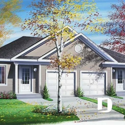 Plan de maison jumelé avec garage et 2 chambres