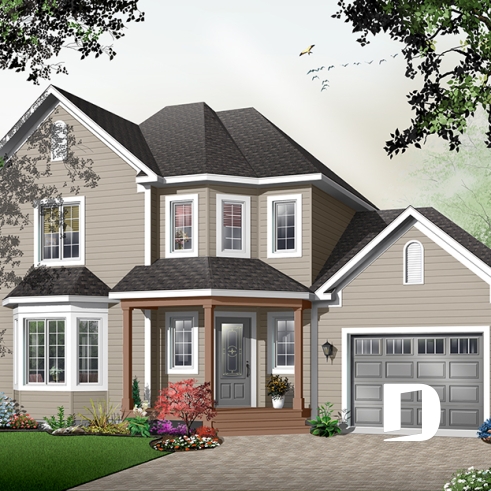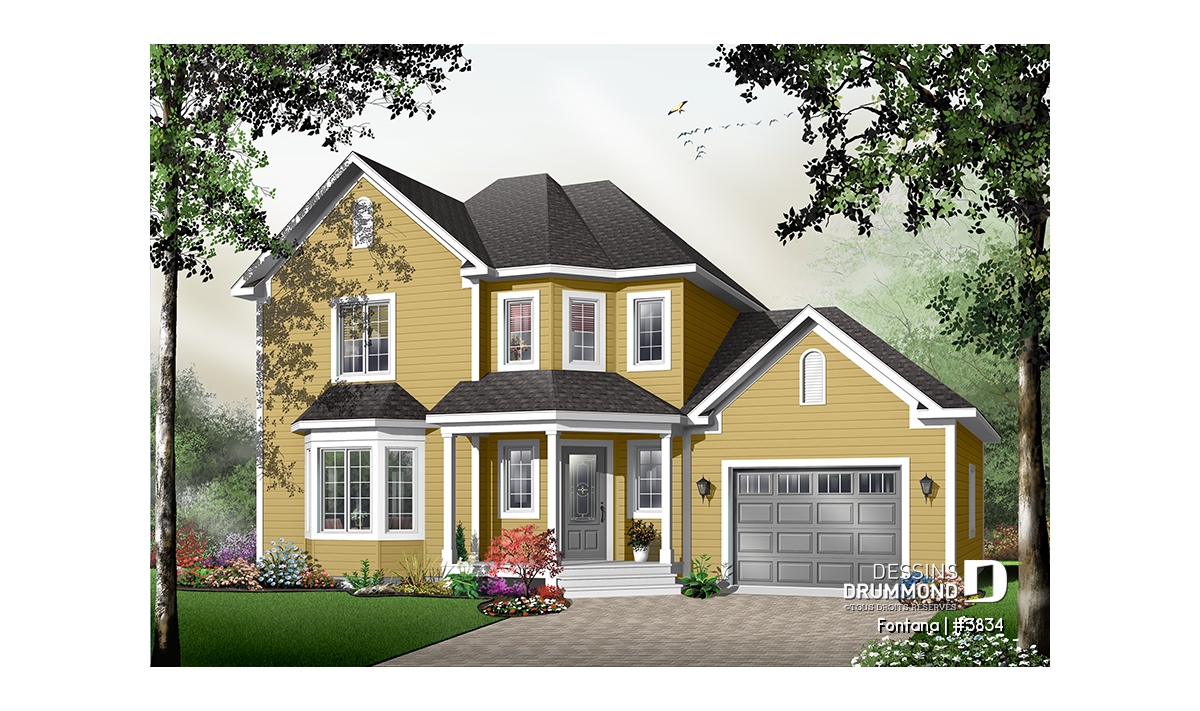 À l’étage, une chambre des maîtres confortable, de belles chambres secondaires et une salle de bain originale, car aménagée dans la partie en tourelle, procurent à ce modèle une bonne part d’items tant convoités par les futurs propriétaires ou ceux à la recherche d’une maison encore plus fonctionnelle.
