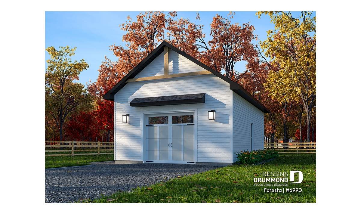 Avec sa composition sobre, ses lignes épurées et son esthétique chaleureuse, ce garage farmhouse moderne s’intègre harmonieusement à une grande variété de résidences, en particulier celles de style champêtre, rustique, farmhouse traditionnel ou modernisé. Polyvalent, robuste et facile à construire, il représente un choix idéal pour compléter élégamment votre propriété.