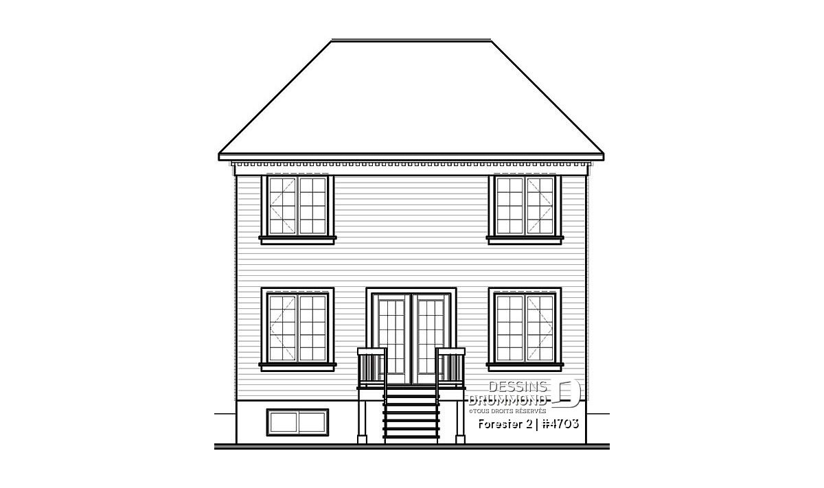 Plan de cottage classique, 3 chambres, fenestration abondante, perron abritée