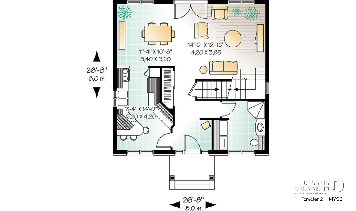 | Largeur | 26'8" | Profondeur | 26'8" |