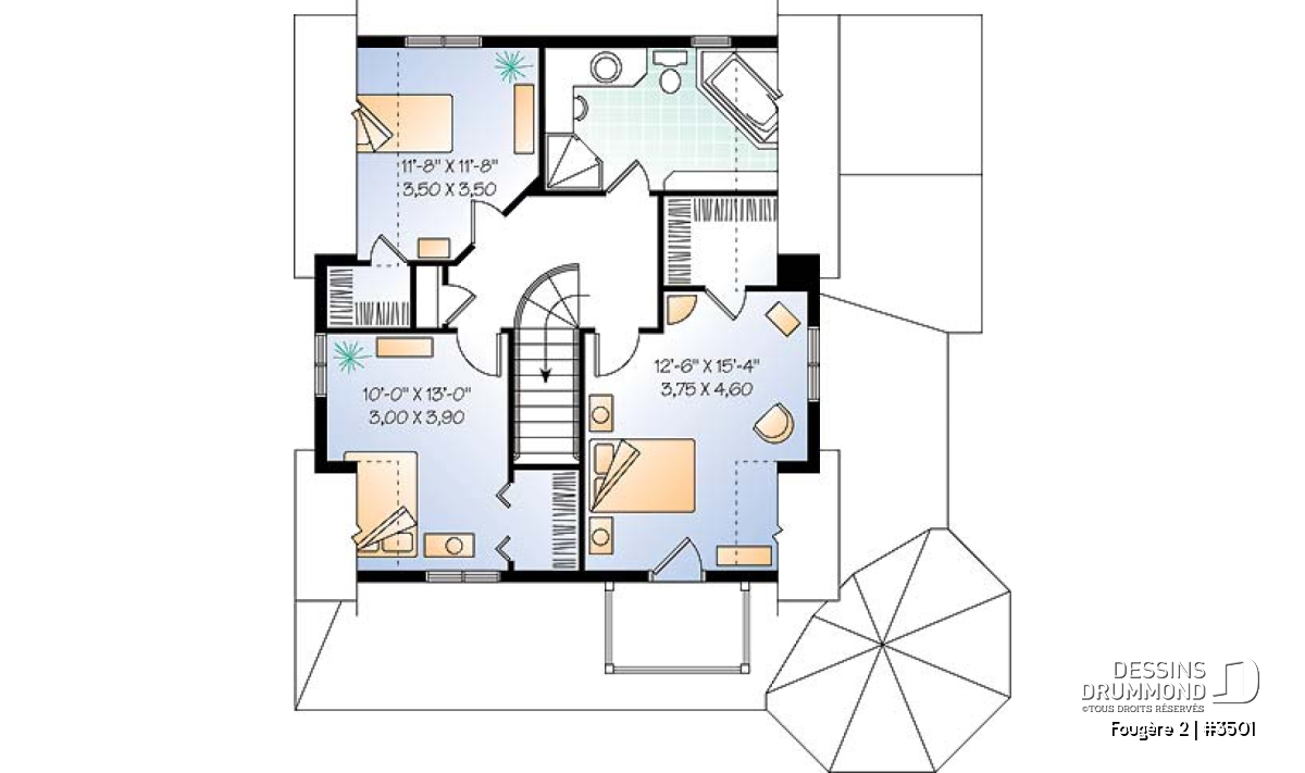 Un intérieur propre à la maison de campagne suggère des pièces des plus confortables au rez-de-chaussée. D’ailleurs, une cuisine aussi logeable fera certes l’envie de plusieurs propriétaires en ces années ou celle-ci semble gagner fortement en popularité. Un escalier centralisé et ouvert accentue le dégagement intérieur. À l’étage, trois belles chambres avec d’excellents rangements sont agrémentées de quelques plafonds en pente, typiques à ce genre d’habitation. Finalement, une agréable salle de bain, pouvant facilement être aménagée à l’ancienne, offre un certain confort.