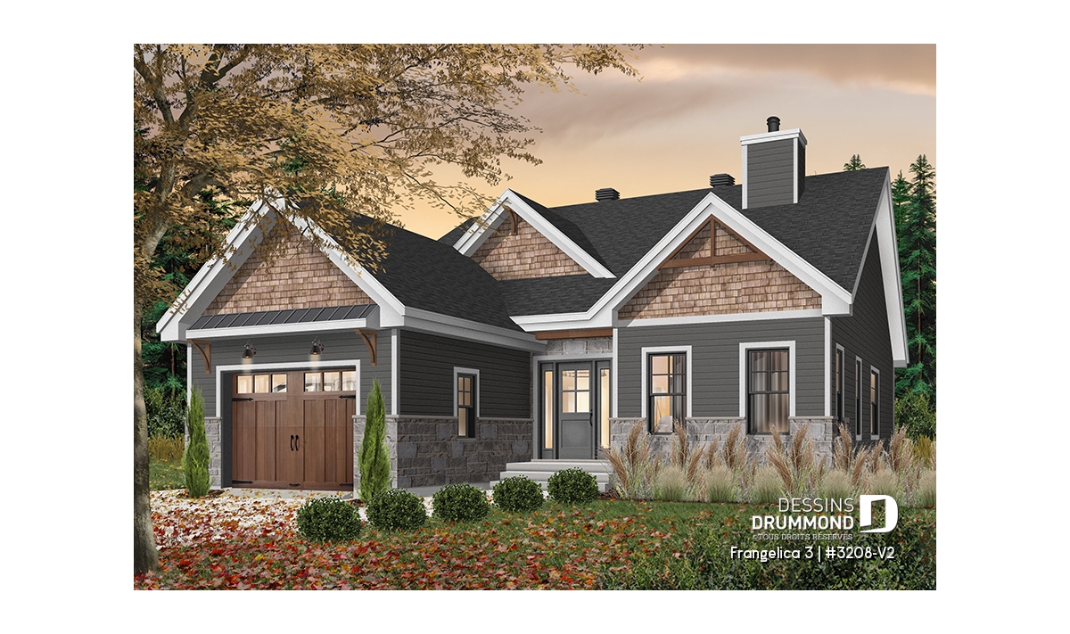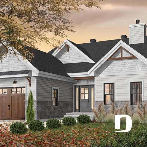 Plan de maison champêtre rustique avec garage.