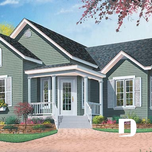 Plan de bungalow champêtre, très abordable, 2 chambres, entrée confortable