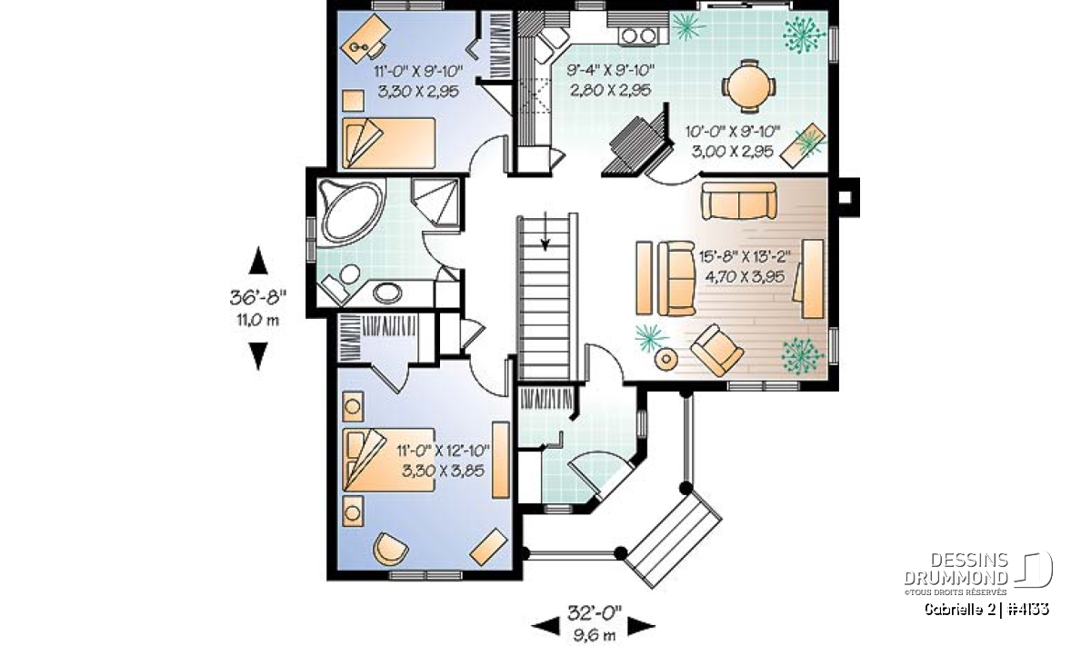 | Largeur | 32'0" | Profondeur | 36'8" |