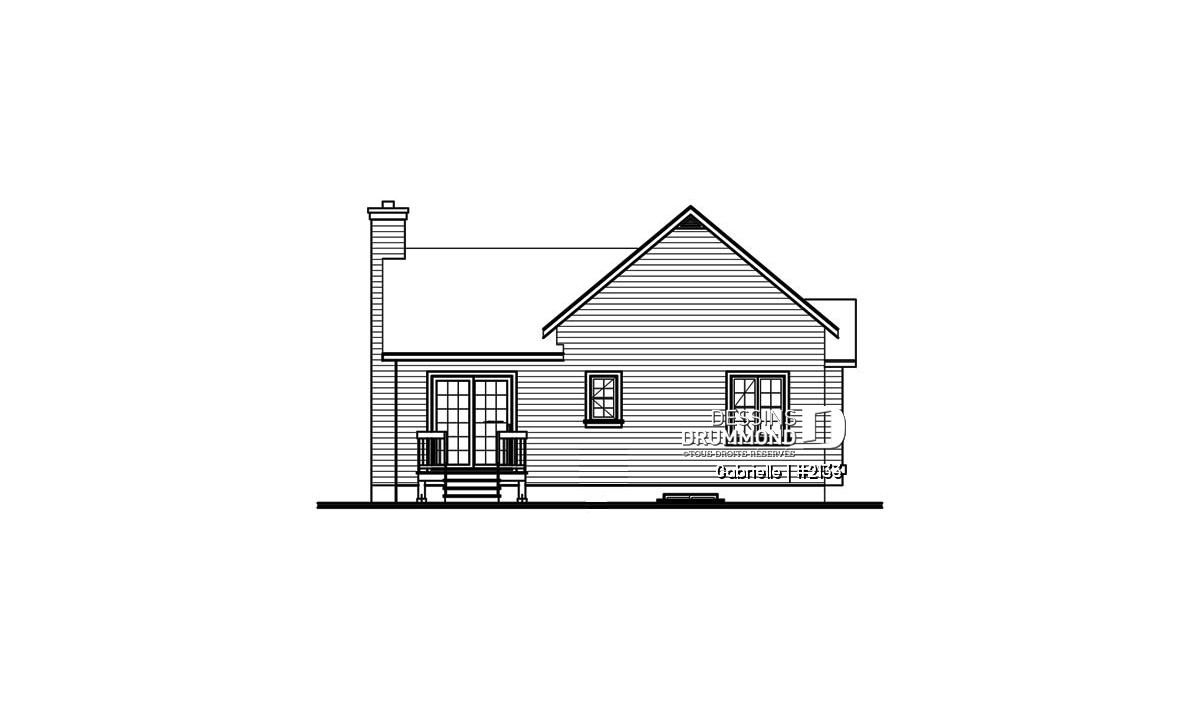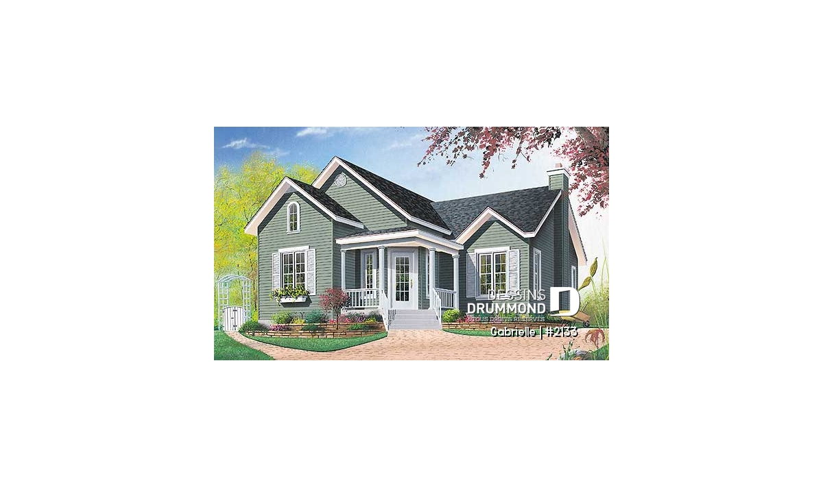 Toujours populaire auprès d’une certaine clientèle désireuse de se distinguer un peu, ce modèle ne passe certes pas inaperçu avec son entrée extérieure à angle, sa fenestration abondante, ses pignons et sa galerie tous deux fort accrocheurs sans oublier cette cheminée bien localisée au faîte du pignon principal pour plus de discrétion et d’harmonie sur la vue latérale.