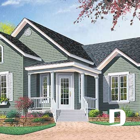 Vue avant - MODÈLE DE BASE - Plan de plain-pied abordable, 2 chambres, vestibule fermé et belle cuisine - Gabrielle