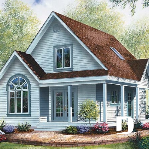 Plan de maison de campagne avec 3 chambres, balcon abrité, mezzanine et cathédral