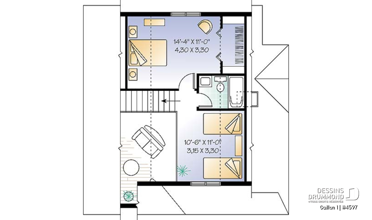 L'espace boni aménageable est généralement prévu au-dessus du garage et il est accessible de la maison. Comme il est prévu aménageable, il pourra devenir un bureau, un espace buanderie, une salle de bain, un coin bibliothèque ou même une chambre additionnelle pour laquelle les propriétaires devront s'assurer d'avoir une fenêtre conforme aux normes en vigueur. De plus, la finition de cette espace boni est toujours INCLUSE dans nos estimation du coût de construction, sauf si avis contraire dans les sections « Description et/ou Éléments descriptifs » de la page du plan.