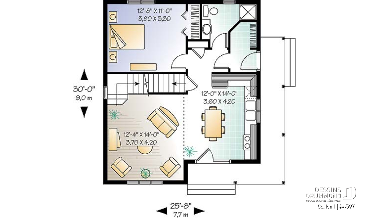 | Largeur | 25'8" | Profondeur | 30'0" |