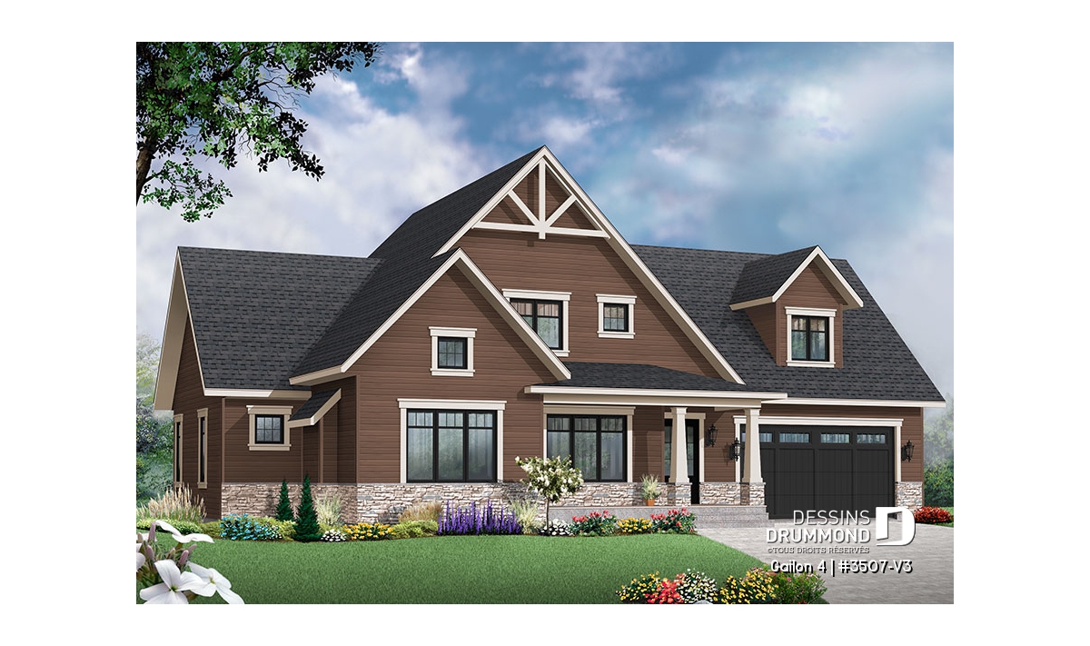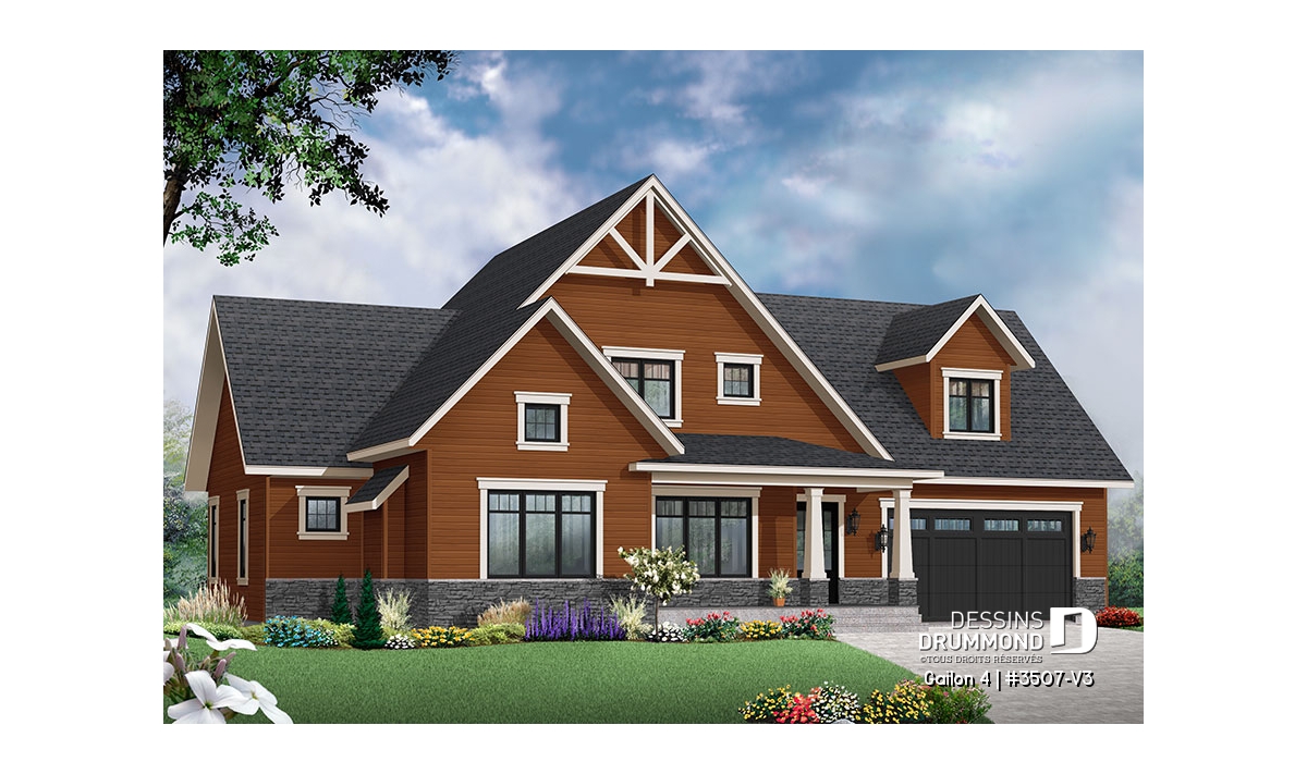 Conçu à partir du très populaire plan champêtre 3507, ce modèle version se veut d’un caractère tout à fait unique avec son garage double et son extérieur véritablement chaleureux.