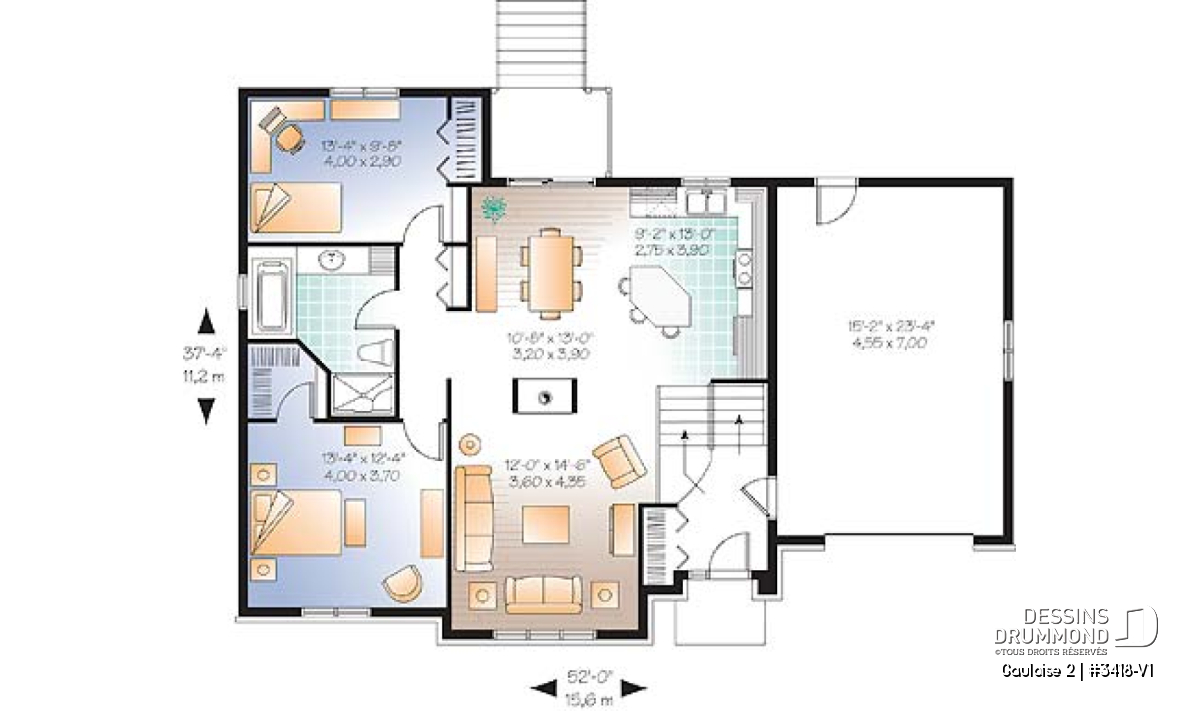 Découvrez d’autres plans de 4 chambres avec garage simple ou double sur www.dessinsdrummond.com